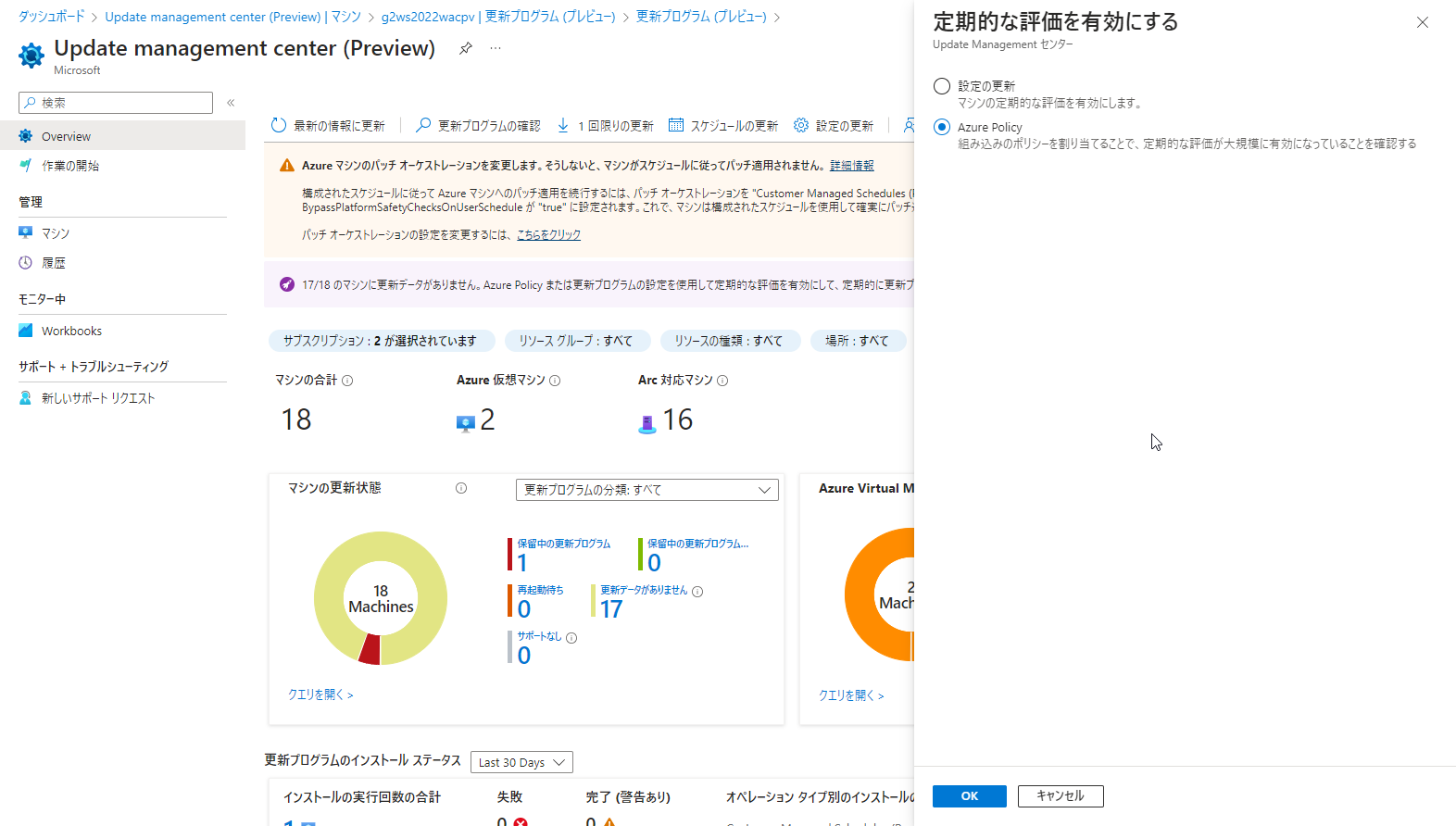 Azure Update Management Center Previewで、更新プログラムの定期的な評価を有効化